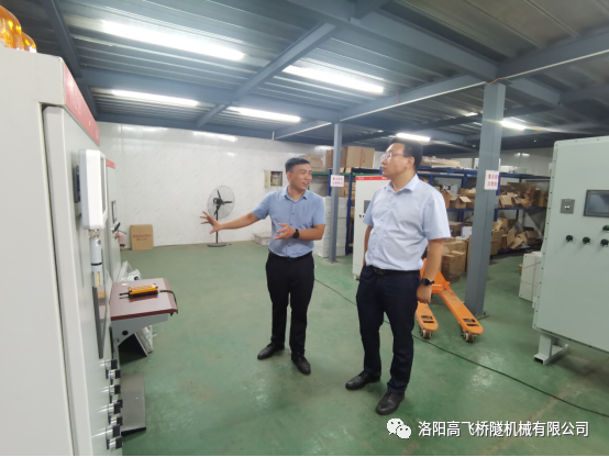 “問需于企,助企紓困?!睘榱藘A聽企業(yè)心聲,找準突出困難問題,助力企業(yè)紓困解難。2022年9月23日西工區(qū)區(qū)委組織部部長王加祥、區(qū)委組織部辦公室主任劉國斌、紅山街道辦事處主任邢斐一行到洛陽高飛橋隧機械有限公司走訪調(diào)研,公司董事長黃高飛陪同介紹公司近況。